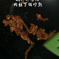热锅内放适量玉米油,煸炒上浆的肉丝盛出。